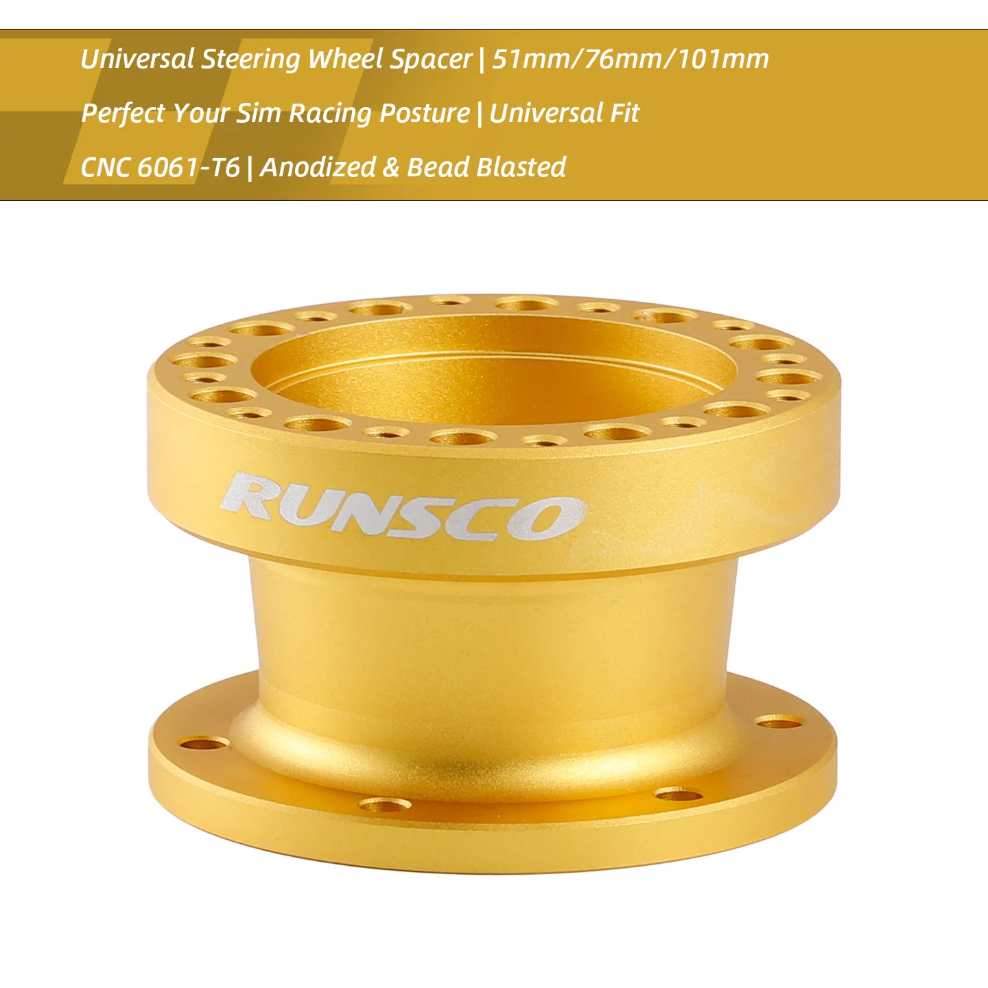 Gold CNC Steering Wheel Spacer 51/76/101mm, Anodized 6061-T6 Aluminum for Sim Racing Wheel Base-522S